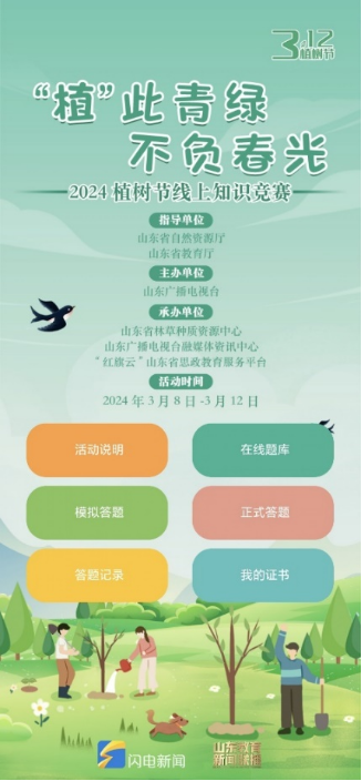 阳春三月,万物复苏,“草木蔓发,春山可望”,为迎接我国第46个植树节,宣传习近平生态文明思想,增进师生的生态文明意识,鼓励大家植树护绿、热爱自然,det365登录网站主页新闻学党支部和本科生党支部师生于3月8日至12日联合参加由山东广播电视台主办的“2024植树节线上知识竞赛”。