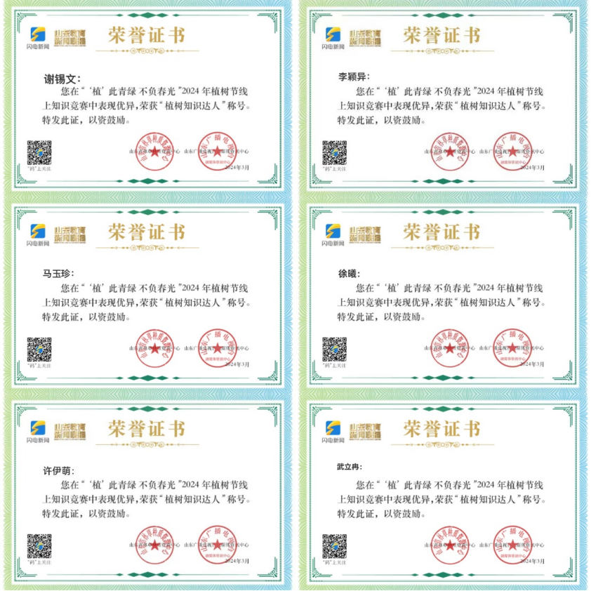 本次线上知识竞赛内容涵盖生态知识、环保常识、政策规定等多个方面,旨在弘扬绿色环保理念,增强公众的环保意识和科学素养。本次活动社会参与人数共计约9万人。det365官网13位教师和若干位同学积极参与学习和答题,获得了“植树知识达人”称号和荣誉证书。