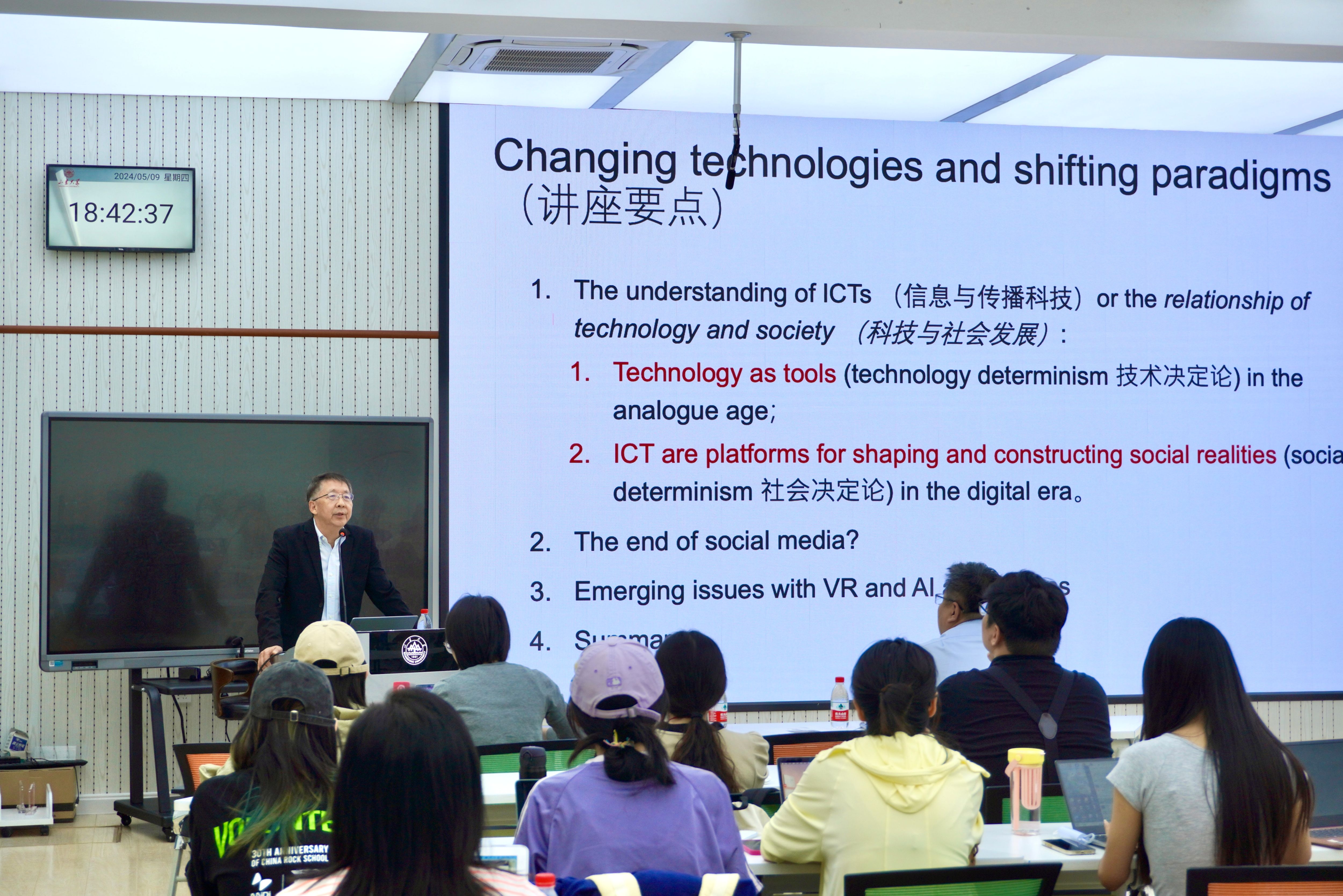 5月9日,香港浸会大学传媒学院讲席教授魏然应邀为det365登录网站主页师生做题为“新媒体研究前沿:问题与探索”的专题讲座。det365登录网站主页副院长(主持行政工作)倪万主持讲座。