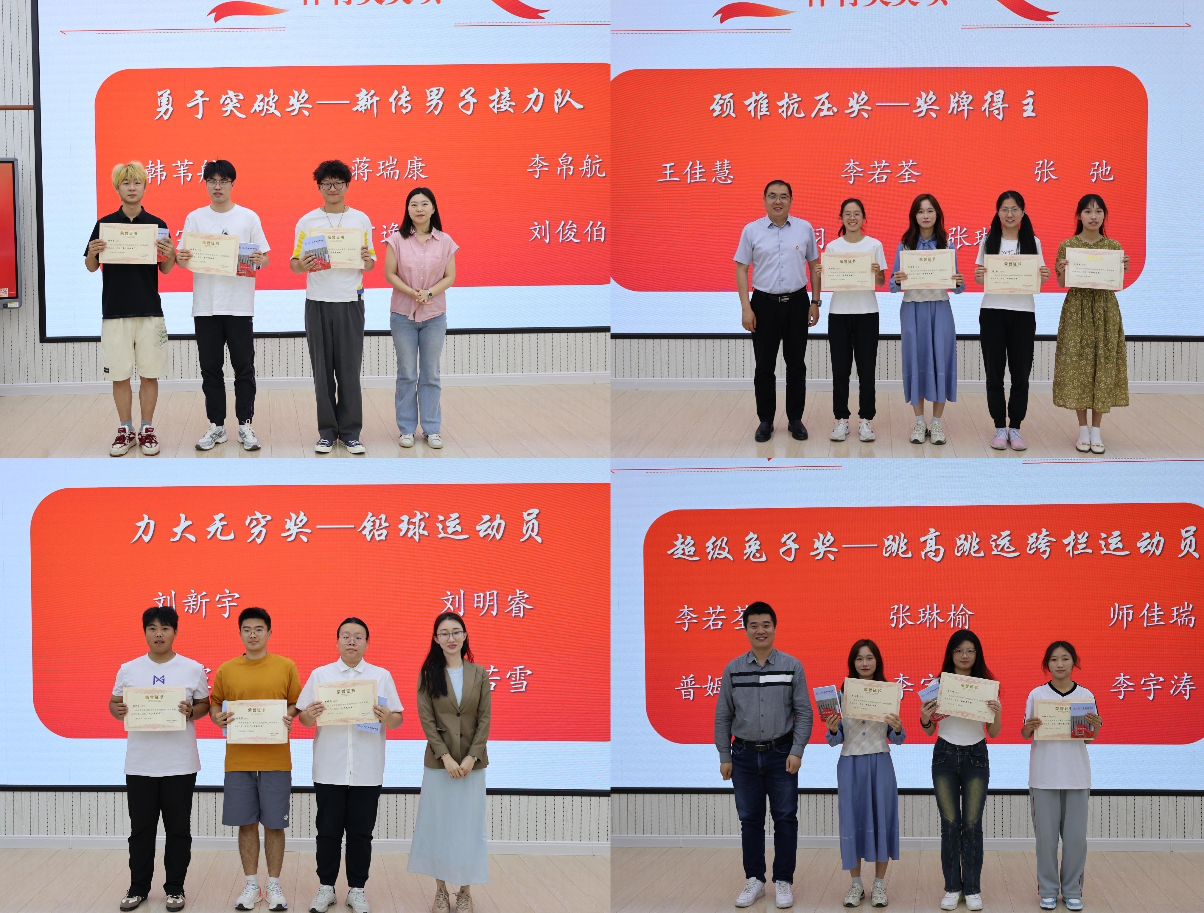 在颁奖环节,校部机关和学院的领导、老师为运动会获奖集体和个人、本科生党支部小农场优秀工作人员、心理辅导站优秀心理委员颁奖。