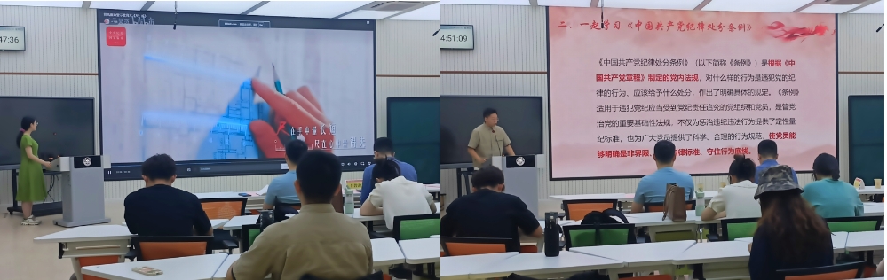 首先,倪万副院长(主持行政工作)向与会师生分享了他关于党纪教育的三点心得体会:一是提高政治站位,对自身纪律的要求要与时俱进,“每一位党员都与中国共产党同呼吸、共命运”;二是结合自身学习和工作进行自我反思,作为党员要发挥模范带头作用,从细微处、从日常生活中发现问题,理解和把握纪律要求;三是联系身边人身边事进行学习,对经济问题和作风问题常抓不懈,严格遵守纪律处分条例。