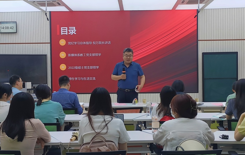 为深入开展党纪学习教育,加强师生间的联系交流,进一步凝聚学院高质量发展合力,5月30日下午,det365登录网站主页新媒体党支部与2022级硕士生党支部联合开展党纪教育主题师生联学活动。本次活动由2022级硕士生党支部书记万钊廷主持,倪万、杨晓冬、于智源、王立强与王静静五位新媒体党支部党员教师领学指导,2022级硕士生党支部全体党员参与。