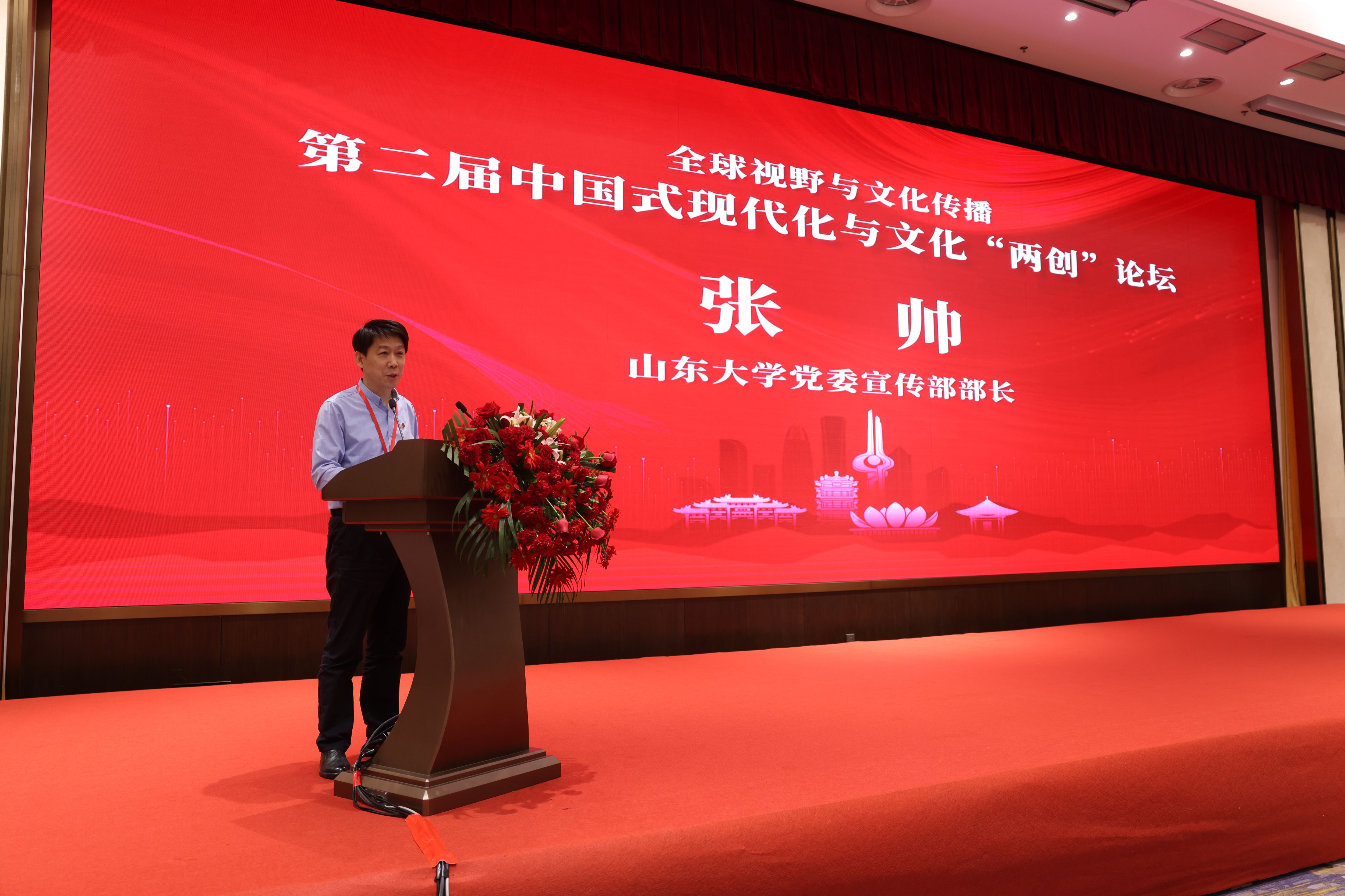 张帅表示,山东文脉绵长、底蕴深厚。习近平总书记对山东文化“两创”工作始终十分关心、寄予厚望。5月22日至24日,总书记再次亲临山东视察指导,深入日照、济南等地进行调研,听取省委、省政府工作汇报并发表重要讲话,强调山东要担负起新时代的文化使命,在推动文化繁荣、建设文化强国、建设中华民族现代文明上积极作为。此次我们共聚济南章丘,举办“全球视野与文化传播:第二届中国式现代化与文化‘两创’论坛”,深入探讨中国式现代化的历史进程及中华优秀传统文化的创造性转化、创新性发展,恰逢其时,意义重大。他表示,坚定文化自信,推动文化繁荣,建设文化强国,需要我们担负起新时代的文化使命,结合新的时代条件传承好、弘扬好中华优秀传统文化,推动优秀传统文化在创造性转化和创新性发展中不断焕发生机活力。他希望,此次论坛能够成为具有广泛影响力的学术交流平台和文化展示窗口,为建设中华民族现代文明贡献力量。