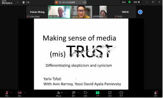 讲座伊始,Yariv Tsfati首先强调了媒体信任在新闻行业的重要性。通过引用《纽约时报》和BBC等媒体机构的相关案例,他指出,媒体机构必须坚守新闻真实性与客观性,以赢得公众信任。随后,Yariv Tsfati深入探讨了媒体信任与公众怀疑主义之间的复杂关系。通过一系列实证研究,他展示了媒体信任度与曝光度之间的弱关联,并指出了犬儒主义和怀疑主义在新闻消费行为中的不同影响。此外,Yariv Tsfati还讨论了在危机情况下,如战争或疫情暴发时,媒体信任如何影响公众的信息寻求行为。
