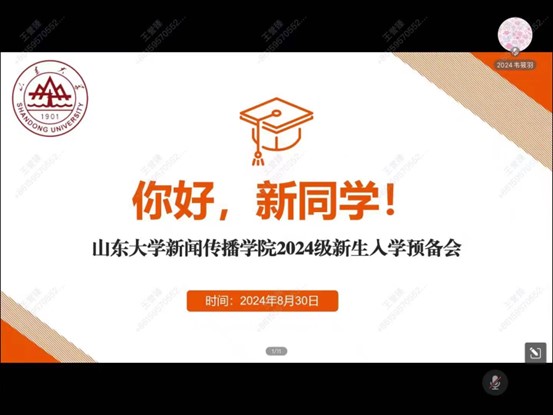 班主任孙晓翠首先对各位家长和同学表示祝贺,并欢迎各位同学加入山大新传的大家庭。然后她从两个方面说明了在学校的学习情况:一是对学校和学院概况进行介绍;二是对新闻传播学这个学科进行说明。最后她再次对同学们的到来表示诚挚的欢迎和祝贺,对同学们的未来表示期待。