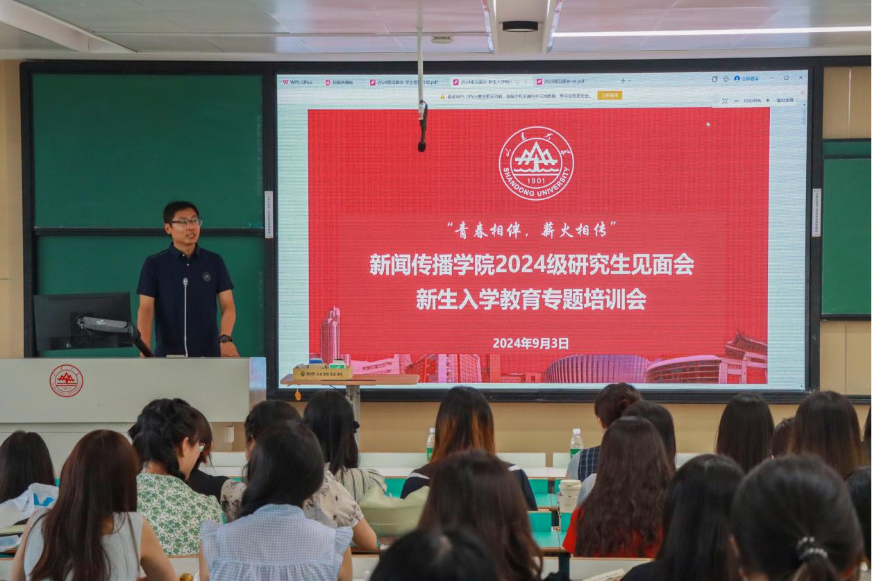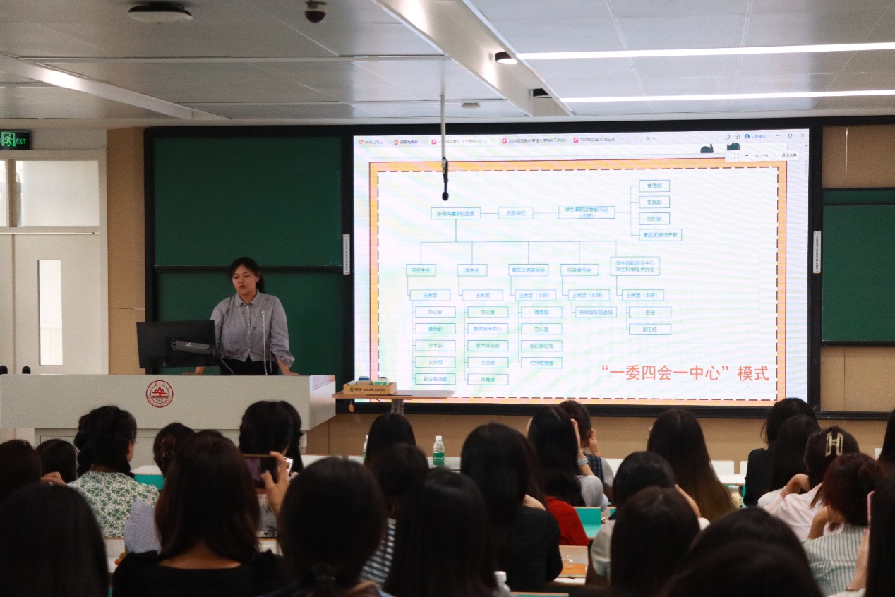 会议的第二部分是新生入学教育专题培训会。首先,新生辅导员杨璐介绍了班级成员结构和基本情况,详细讲对新生入学教育的具体安排和流程,并从身份转变、师生关系、自我管理、职业规划、人际交往、应对挫折、组织纪律等七个方面为新生提供了切实可行的指导,帮助新生更好适应即将开始的研究生生活。