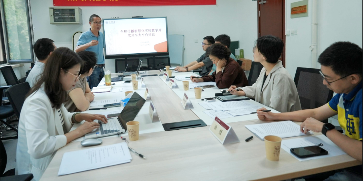 于智源介绍全球传播智慧化实验教学开放共享大平台总体情况,以及2024年学院已配套经费支持建设情况。戴元初教授重点介绍全球传播智慧化实验教学开放共享大平台2024年学校经费投入部分的新增模块,以及2025年-2026年两年的建设申报内容,并就全球传播智慧化实验教学开放共享大平台的必要性、可行性、建设方案、预期成效、项目预算等进行了汇报。
