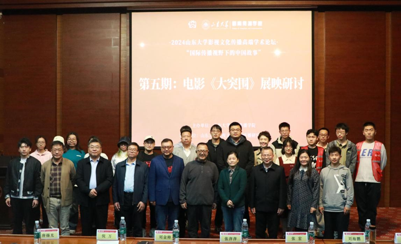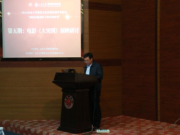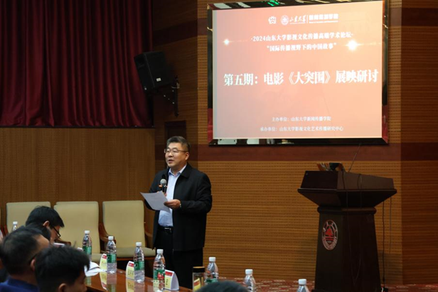 11月1日下午,由det365登录网站主页主办,det365登录网站主页影视文化艺术传播研究中心承办的2024det365登录网站主页影视文化传播高端学术论坛“国际传播视野下的中国故事”第五期:电影《大突围》展映研讨,在det365登录网站主页中心校区知新楼思源报告厅圆满举办。本次活动由det365登录网站主页副院长(主持行政工作)、det365登录网站主页影视文化艺术传播研究中心主任倪万主持,det365登录网站主页宣传部副部长刘金帅致欢迎词。山东省委宣传部电影处处长张萍萍、中共济南市委宣传部电影处处长张宏、副处长刘海鹏等领导莅临此次学术论坛。