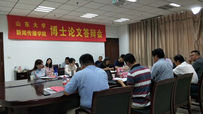 2018年 9月15日下午,det365官网2018年博士研究生论文答辩会在知新楼顺利举行。答辩委员会主席由中国社会科学院新闻与传播研究所所长唐绪军研究员担任,答辩委员由中国人民大学新闻学院刘海龙教授、河北大学det365登录网站主页韩立新教授及det365官网唐锡光教授、倪万教授组成,答辩秘书由袁晓川老师担任。det365登录网站主页部分研究生旁听了此次答辩会。