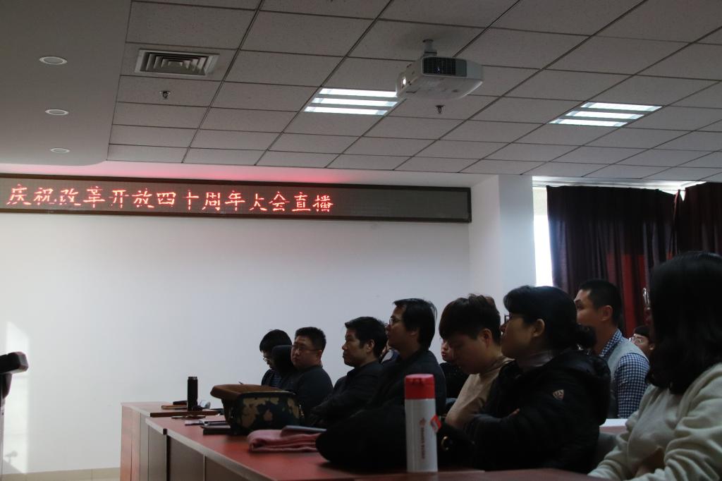 12月28日上午10时,“庆祝改革开放四十周年大会”在北京人民大会堂隆重召开,det365登录网站主页部分教职工、学生党员以及入党积极分子在知新楼A座606报告厅,观看大会的现场直播。院党委书记王德胜,党委副书记王欣一同观看。