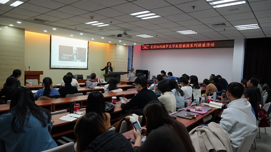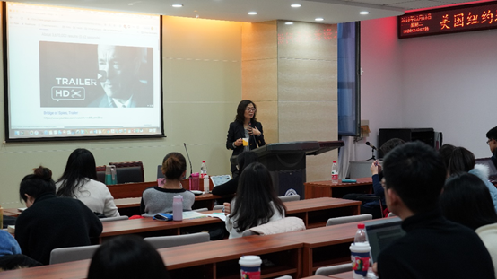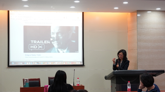 12月18日下午,det365登录网站主页2018年度流动岗位特聘教授、美国纽约城市大学朱影教授系列讲座继续进行。本次讲座围绕美国经典影片《Catch Me if You Can》(中文译名为《猫鼠游戏》、《逍遥法外》)展开),由det365登录网站主页副院长邱凌副教授主持,det365登录网站主页于晓风副教授和部分研究生参加讲座。