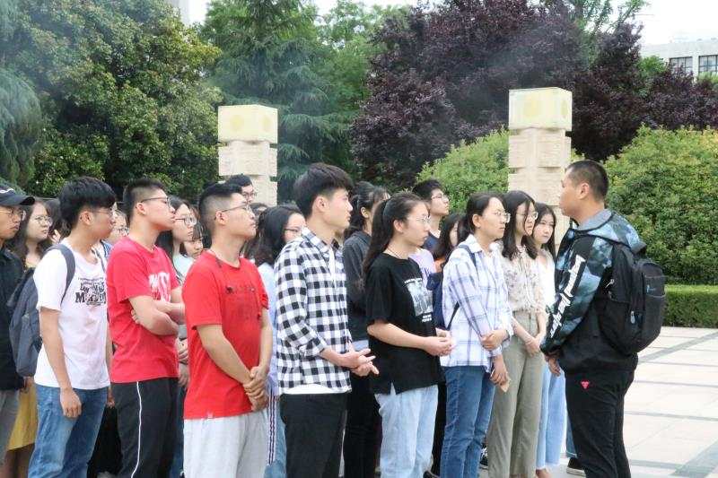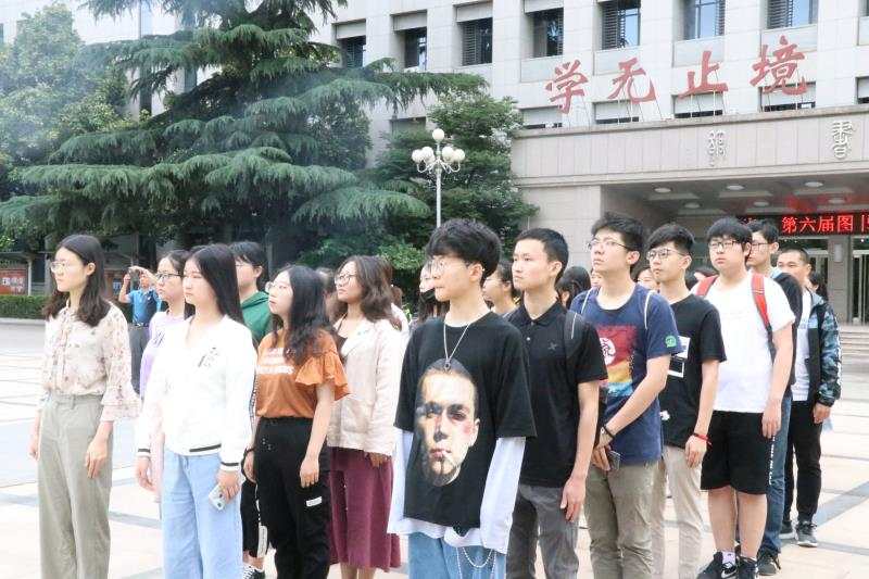 5月27日清晨,det365登录网站主页2018级本科生在文理图书馆前参加升旗仪式。