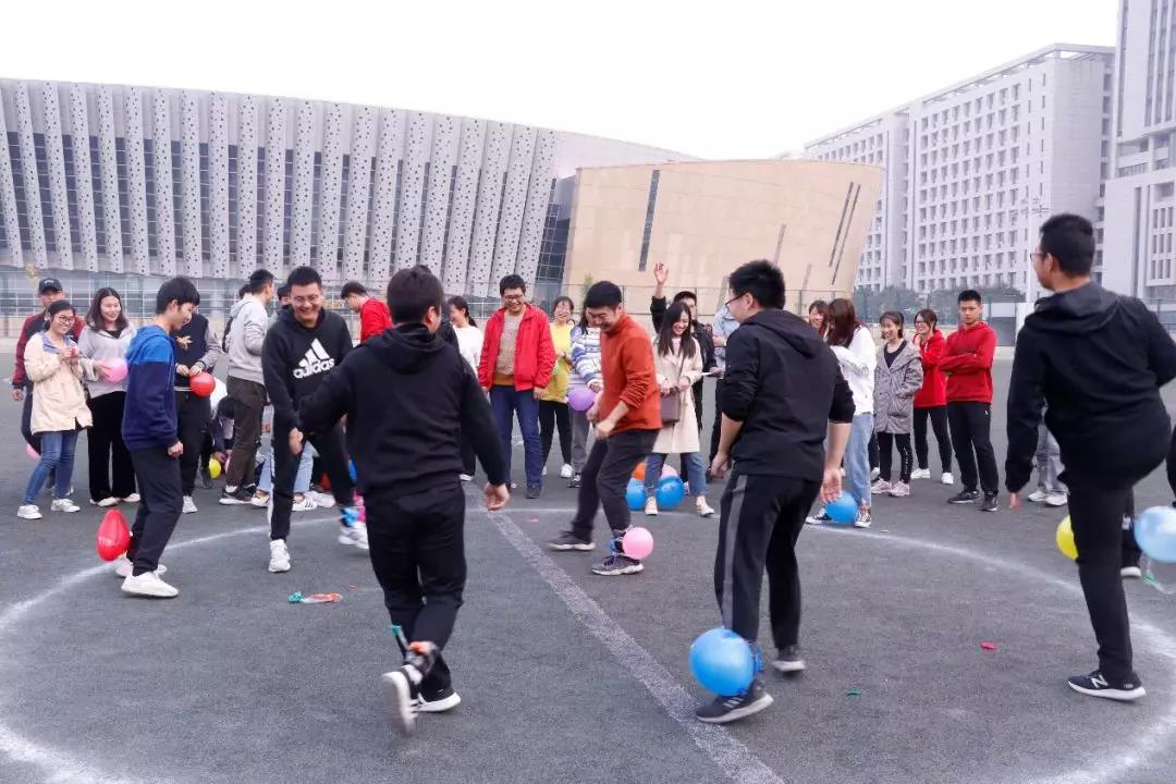 趣味接力赛的难度不小,先是四到五人绑脚走,然后一起像小仓鼠走滚轮一样踩着布料滚轮到终点,这个项目提高的不仅是同伴之间的默契度还有信任。踩气球更是火爆全场,嘭嘭嘭的气球爆炸声,点燃了同学们的热情,色彩斑斓的气球,映照出大家激昂的青春。