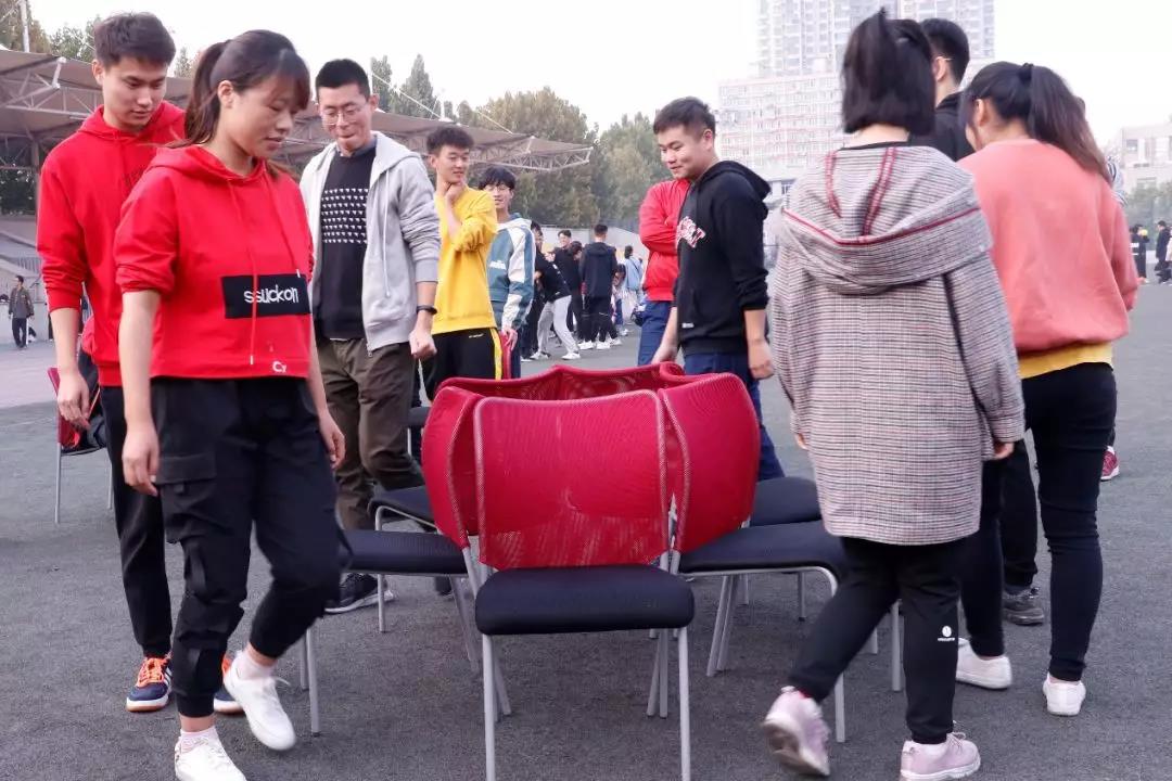 本次趣味运动会由抢凳子、瞎子背瘸子+心心相印+袋鼠跳+哑巴竞速赛、趣味接力赛、财源滚滚+结对而行、踩气球、拔河六大项目组成。在负责人简单讲解游戏规则和流程之后比赛正式开始。最先进行的项目抢凳子看似再简单不过,却考验着同学们的反应力和友善度,从十个人一组抢九个凳子开始,每一轮以此类推,在围着凳子转等喊停的时候,每个人都全身绷紧,集中注意力,希望将大脑接受到信号到身体作出反应的时间差降到最小。