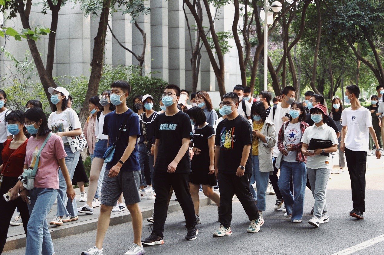 下午三点半,新生见面会暨开学第一课结束后,新生在中心校区电教北楼集合后出发。