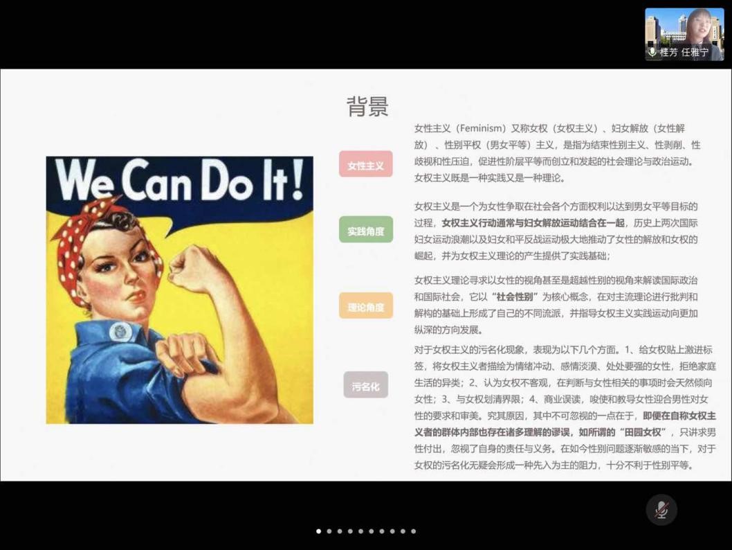 det365登录网站主页“桂芳Guifang”女性主义文化艺术传播实践队聚焦于女性主义这一社会热点,结合女性权益现状,通过背景分析、实际调研、文艺宣传等方面,从理论角度和实践角度总结了“女权主义”发展现状,并为当下女性主义文化艺术传播现状提出切实建议。