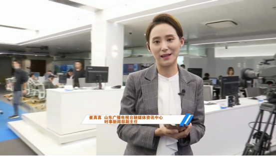 直播从融媒体中心的中心办公区域拉开序幕,吕芃院长边走边讲,一镜到底,详细介绍了闪电云融媒体指挥调动平台的构成,并实时采访多位正在工作状态中的一线新闻人,多角度剖析目前山东广电融媒体中心的建设情况以及三级(省、市、区县)媒体融合联动的现状。在一线新闻人参与互动讲述的环节中,山东广播电视台融媒体资讯中心时事新闻部副主任崔真真从策、采、编、审、发、评六个角度介绍了闪电云系统所提供的全生命周期融媒体指挥调动中心;山东广播电视台数据舆情中心主任谭鲁民通过介绍快讯、页面、审核、评论、媒拓、互动评论审核以及网络专题聚合编辑等岗位,浓缩解读了新媒体发布运营的流程;山东广播电视台融媒体资讯中心副主任张倩在现场展示了融媒体演播室全方位、立体化的大屏包装系统、便捷实时的虚拟植入系统以及自动集约化的拍摄系统;德州市广播电视台副总编辑左靖则通过远程连线,以具体的数据、翔实的案例为我们展现了“全省一盘棋,共享一朵云”的三级联动宣传一体化新格局。