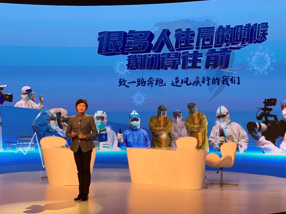 在“命运与共,体现中国担当”主题,总台CGTN记者葛云飞介绍了国际传播工作经验。随后,主持人敬一丹与总台北美总站记者徐德智进行现场连线。徐德智讲述了在美国疫情期间针对底层群众的采访报道经历。