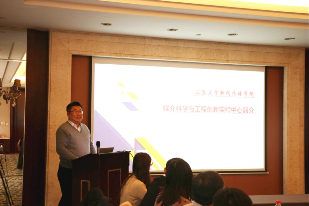 det365登录网站主页常务副院长刘明洋教授介绍“媒介科学”名称由来,通过学科交叉,将提升科学素养与学科建设结合起来,为形成山大学派做出贡献。详细阐述了近三年以来学院围绕“媒介科学”的三个维度——媒介知识、媒介技术和媒介实验体系构建做出的努力,以及支撑平台——“媒介科学与工程”实验创新中心的筹建背景。并得到了与会专家的赞许。