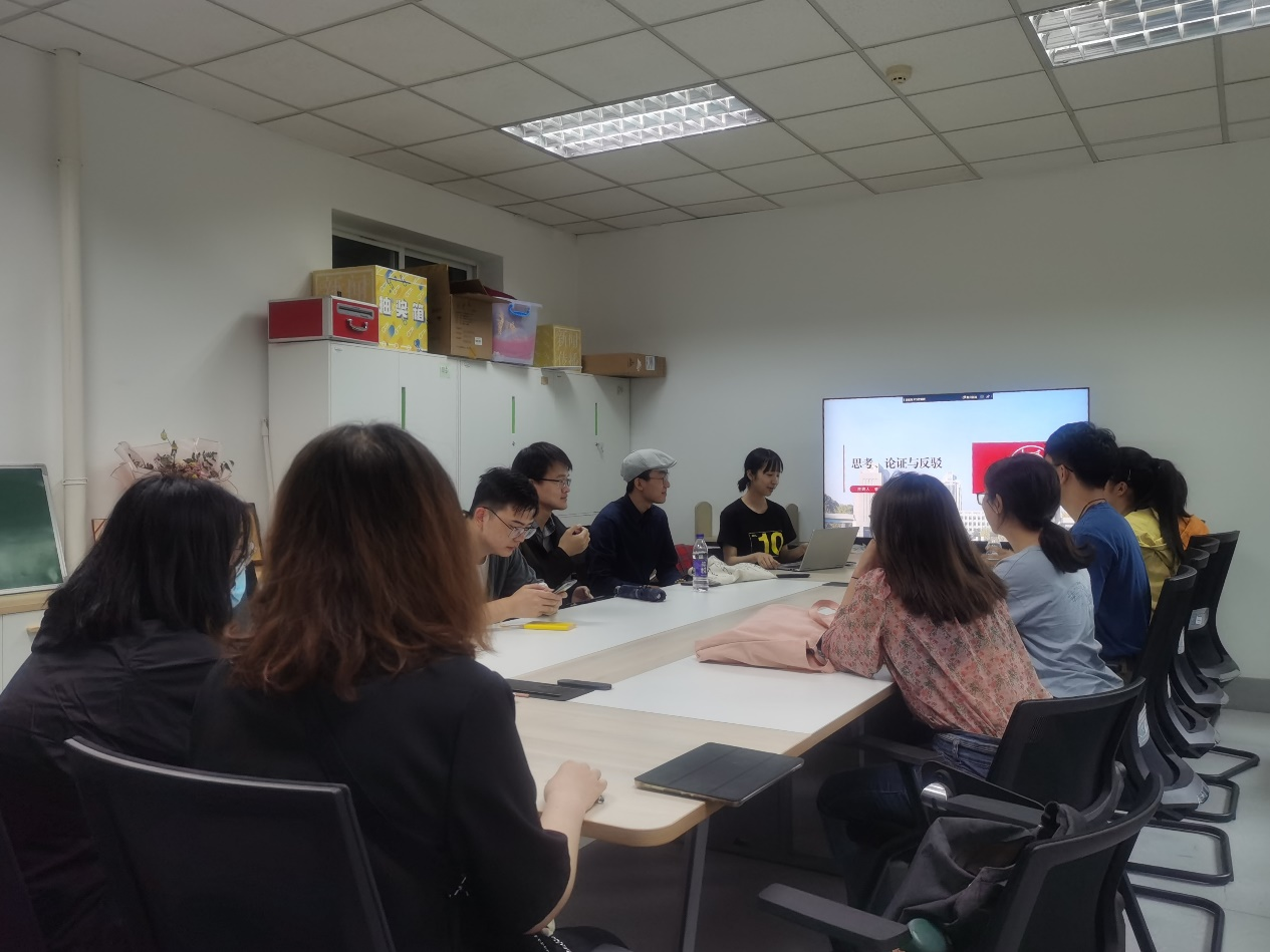 在论证与论证责任方面,李晓璇用“科技进步降低人类安全感”的辩题举例,讲解了用论证来支撑论点的具体操作,并举出论证的三种形式——数据与研究报告、案例与故事和逻辑。接着她说明了论证责任划分的依据和标准,辩论双方“谁主张,谁举证”,并通过“外卖骑手被困在系统里主要责任是否在平台方”这个辩题与成员进一步探讨了有关论证责任划分的具体操作。
