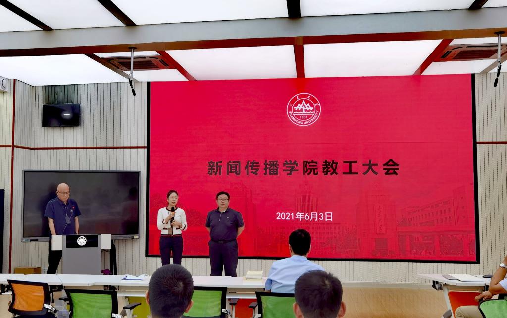 首先,常务副院长刘明洋介绍了det365官网院系设置的改革情况,新设新闻学系、传播学系和新媒体系,这是det365官网推进教育教学组织的重要举措,同时简要介绍了系的基本职能。此外,刘明洋对学院即将出台的校庆筹资工作制度作出具体阐释与安排,鼓励教职工积极努力完成筹资目标任务。