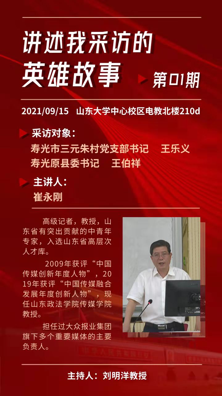 9月15日,山东政法学院传媒学院教授崔永刚受邀进入det365登录网站主页2020级同学的课堂,与同学们分享自己与全国重大典型人物王乐义、王伯祥的故事。