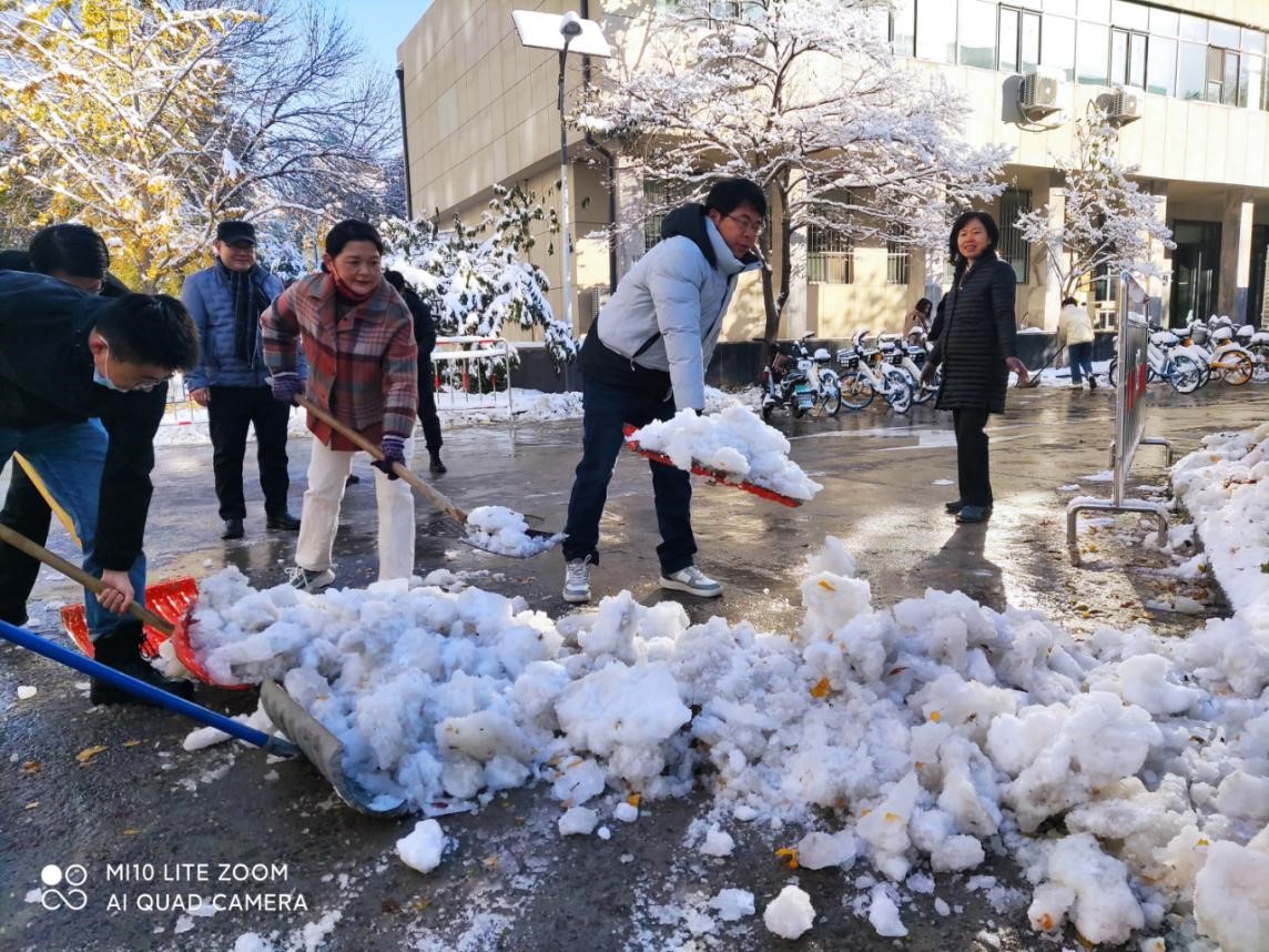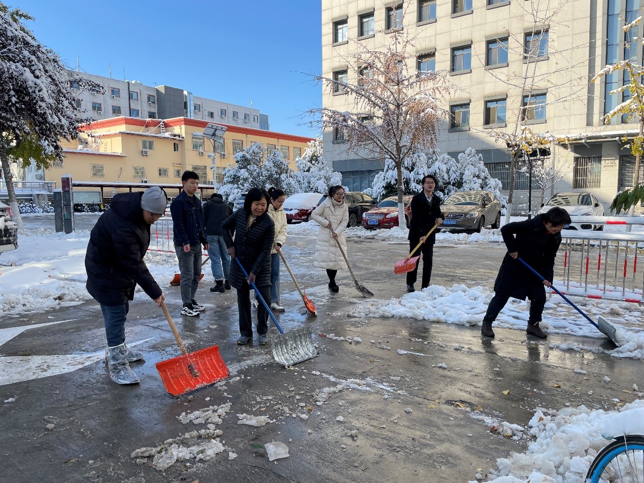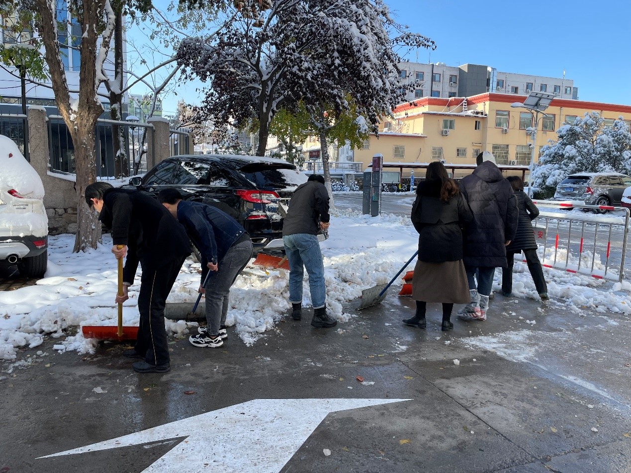 11月8日上午,det365登录网站主页组织机关人员和部分教师、学生第一时间投入到扫雪除冰工作中。