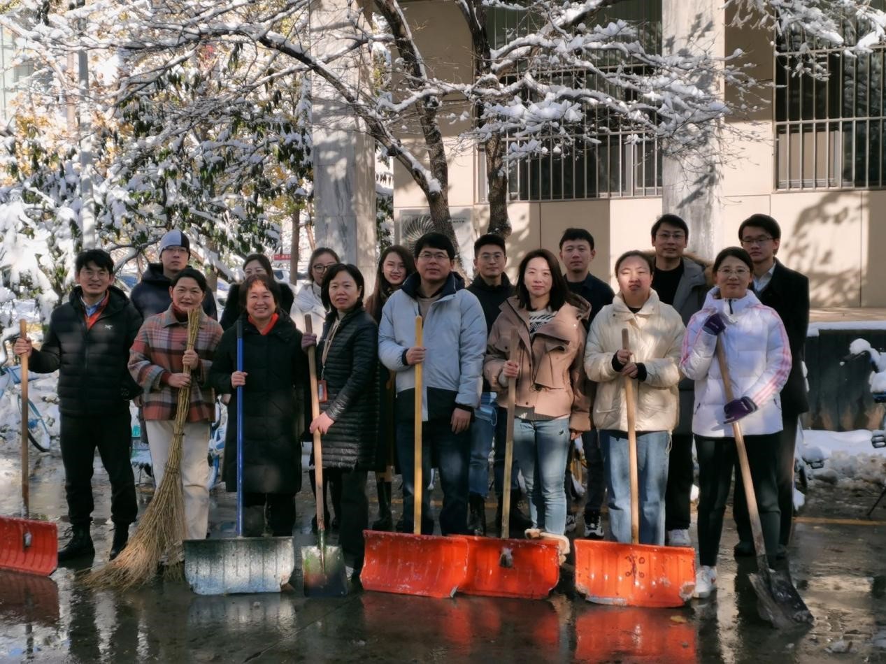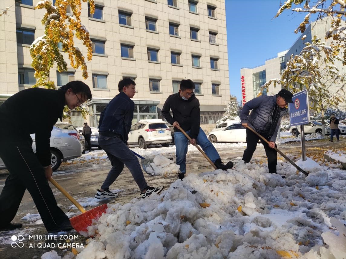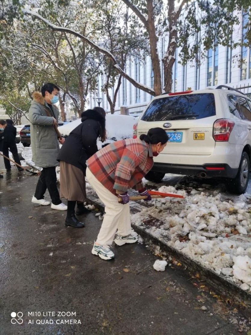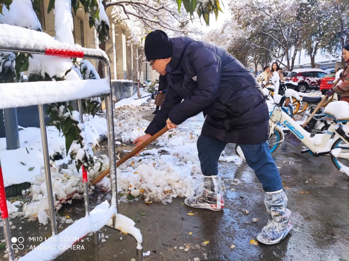 11月8日上午,det365登录网站主页组织机关人员和部分教师、学生第一时间投入到扫雪除冰工作中。