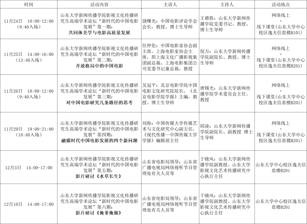 为贯彻落实习近平总书记关于推动中华优秀传统文化创造性转化、创新性发展的指示精神,推动我国高等教育内涵式发展,践行研究生教育教学改革的基本原则和核心使命,对接山东省“十四五”电影产业发展规划的现实需要,围绕高校服务山东电影产业发展总体布局,打造中华优秀传统文化影视化呈现的“山东品牌”,走出符合山东地域特征、传承齐鲁文化当代精神、立足山东、辐射全国的两创实践应用之路,推动理论研究、作品创作、技术探索和实践育人不断完善,det365登录网站主页与det365登录网站主页影视文化艺术传播研究中心联合举办“det365登录网站主页影视文化传播研究生高端学术论坛‘新时代的中国电影发展’”。欢迎大家参加!
