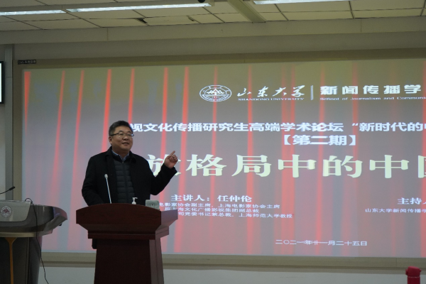 11月25日,det365登录网站主页影视文化传播研究生高端学术论坛:“新时代的中国电影发展”第二期在中心校区如期举行。本期讲座特邀中国电影家协会副主席任仲伦教授主讲,主题为《开放格局中的中国电影》。det365登录网站主页副院长、博士生导师倪万教授担任主持人,近百位来自驻鲁各大高校及山东电影产业领域的观众通过互联网云端,与现场的det365官网师生共同聆听。
