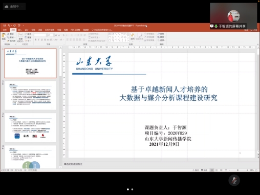 于智源对《基于卓越新闻人才培养的大数据与媒介分析课程建设研究》进行结题验收汇报,项目落实卓越新闻人才2.0计划中提到的“培养善用十八般兵器的全媒化复合型”的新闻传播人才,培养学生了解大数据及其可能带来的潜在风险;同时顺应媒体融合的发展趋势,结合学生实际基础情况,从理论和实验两方面对课程内容进行构造,建立以学生为中心的培养、考核、评价机制,开设“大数据与媒介分析”相关的三门课程,学生反馈良好。在培养质量方面,实现课程授课团队本院化和助教团队本院化,学生通过学习组队参加全国大学生数学建模竞赛,实现了det365官网在该项竞赛0的突破。课程不仅立足本院,同时在暑期面向全校学生开设“Python工坊课”,也与多所高校负责人进行项目的推广和宣介,进一步提升课程影响力。