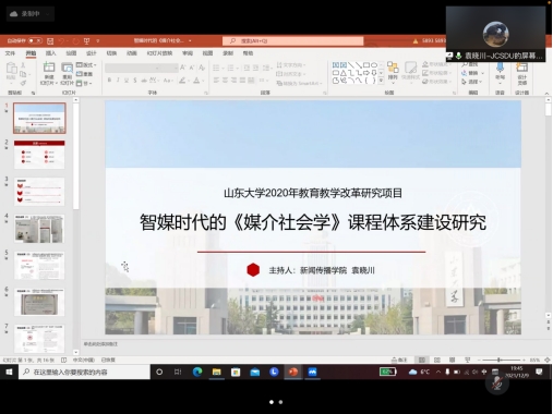袁晓川对《智媒时代的<媒介社会学>课程体系建设研究》进行结题汇报,项目围绕媒介科学体系的互动进行探索,在新文科背景下,如何利用媒体思维进行思考。经过课程的项目培育,本科生通过课堂思维、社会实践等多个方面进行学习,学生深入所在县区,走进融媒体中心,切实感受县级的融媒体中心如何生产内容促进乡村振兴,学生在过程中既锻炼了拍摄能力,同时体验了县级融媒体的中心的发展现状,提升自己的协作能力。学生在实践过程中,提升了动手能力和操作能力,在认知媒介、理解媒介中收获多元的视角。同时,还培养学生的学术思维,以课程为依托带学生撰写学术论文、参加学术会议及论文发表。项目的设立丰富了教学方式,学生的参与性更加丰富。