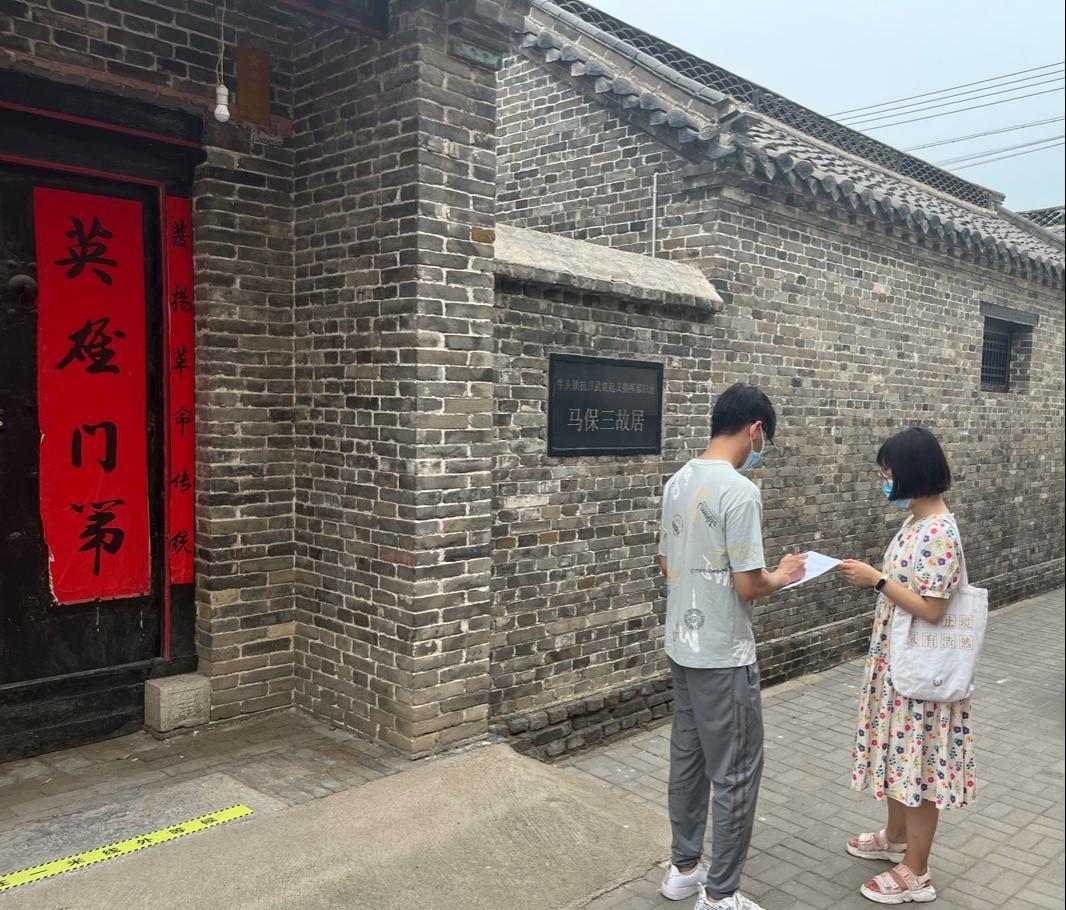 (上图为队员在马保三故居前向游客发放调研问卷)