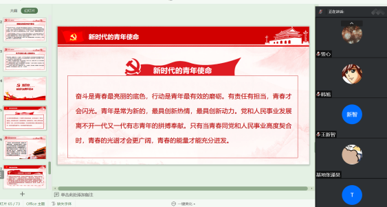 青春孕育无限希望,青年创造美好明天。为深入学习贯彻习近平总书记在庆祝中国共产主义青年团成立100周年大会上的重要讲话精神,大力推动习近平新时代中国特色社会主义思想在青年中入耳入脑入心,det365登录网站主页“党史新声”宣讲实践团于2022年8月14日晚面向山东省邹城市暑期返乡社会实践大学生群体开展了“牢记青春寄语”主题宣讲活动。宣讲活动以线上形式进行,来自各个学校的三十余名大学生参与宣讲。