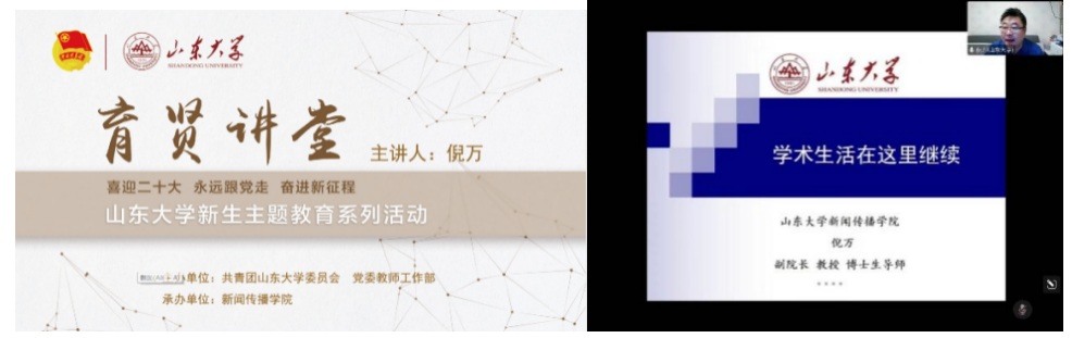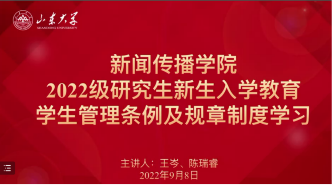 倪万副院长作“学术生活在这里继续”学术科研教育讲座上午9:00,det365登录网站主页副院长倪万为2022级全体研究生新生作“育贤讲堂”研究生学术科研教育讲座。倪院长先从det365登录网站主页的悠久历史讲起,为新生们详细讲解了学校的衣食住行情况,又对det365官网的建院历史、师资队伍、培养体系一一介绍,给新生们描绘出底蕴深厚的山大和朝气蓬勃的新传。det365官网建立了以全员导师制、国际化导向、学术化导向、实践化导向为特色的三全育人体系,建有融媒体与全息传播实验室、无人机与移动媒体实验室等实验室为新生实现学术追求塑造了坚实根基。最后,倪院长鼓励新生动心忍性,勤学好问,做道德情怀高尚、学术素养过硬的优秀新传研究生。