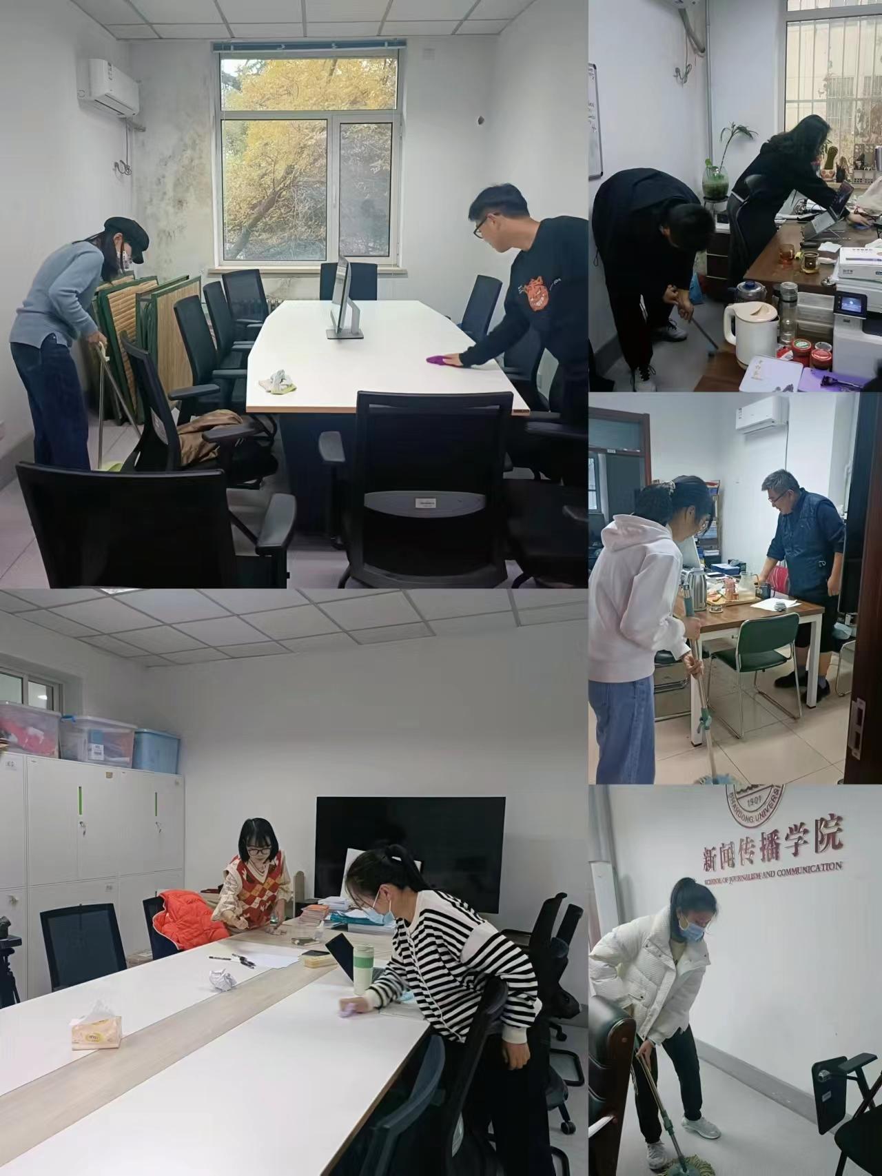 下午四点,学生志愿者们准时来到生命南楼,跟老师一起领取自己的劳动工具。随后,2022级本科辅导员张鑫淼对本班学生做了具体明确的分工,同学们在老师们的带领下分布于学院各处——办公室、走廊、大厅、大平台、会议室......全体教职工齐动手,亲自示范、指导。在大扫除过程中,师生们积极参与,热情洋溢,在共同劳动中拉近师生距离,在互帮互助中感受集体力量。