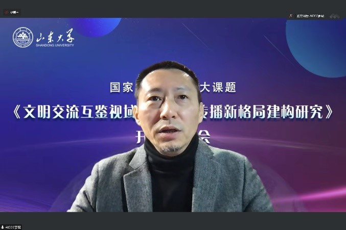 复旦大学新闻学院孟建教授对课题成功立项表示了祝贺,肯定了课题组丰富的实践积累和严密的逻辑思路。他强调,在党的二十大报告的思想引领下,加入人类文明新形态的概念必不可少。同时,孟建教授还多次提到在文明交流互鉴视域下传播领域的“量子纠缠”现象,并表示非常期待这次重大课题的新成果。