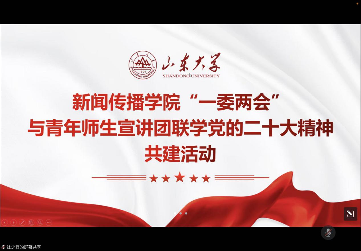 为深入学习宣传贯彻党的二十大精神,引领det365登录网站主页学生更好地领悟伟大时代精神,承担时代使命担当,12月4日晚,det365登录网站主页团委、学生会、权益委员会与det365登录网站主页学习贯彻党的二十大精神青年师生宣讲团开展联学党的二十大精神共建活动。本次活动由学生会执行主席徐少磊主持。