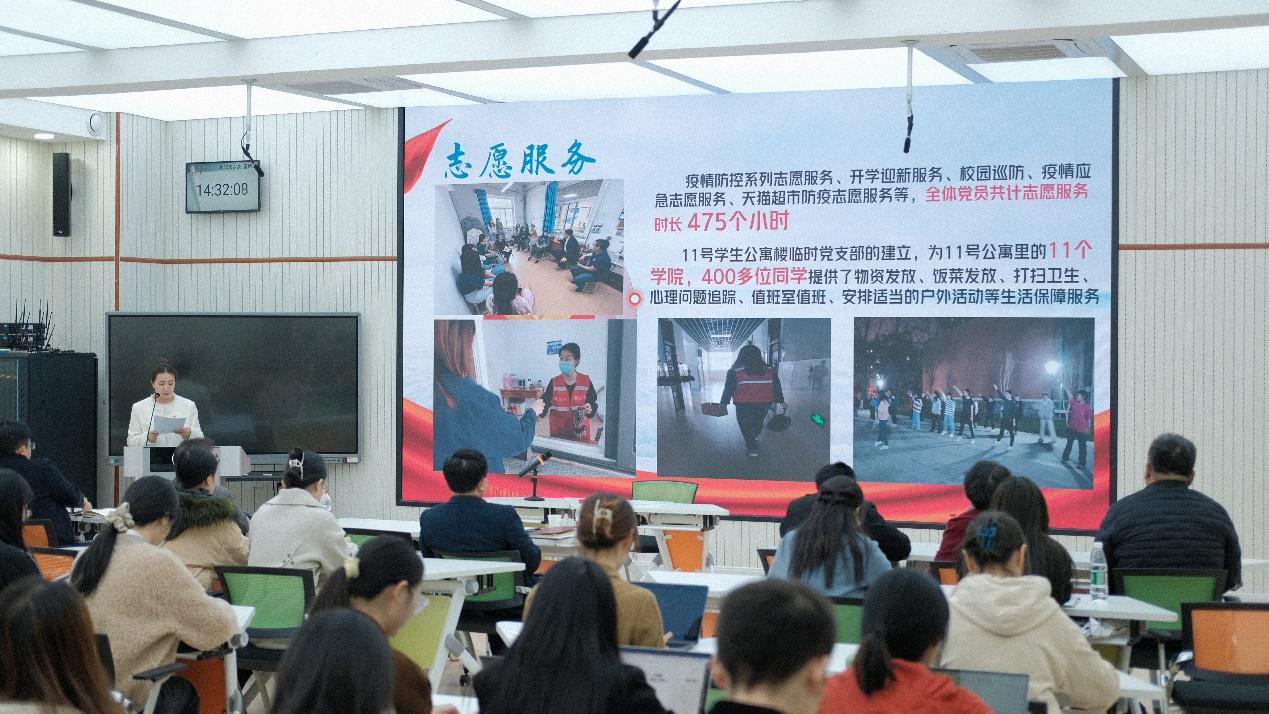 卡勒布努尔·马木吐汗代表det365登录网站主页2021级硕士生党支部就2022年度支部党建工作进行汇报,展示了疫情期间学生党支部丰硕的党建成果。2022级硕士生党支部书记万钊廷围绕“增强中华文明传播力影响力,做新时代中国形象传播者”进行主题宣讲,结合学科特色和专业特长,介绍了国内外中国文化传播现状,交流了新时代、新形势下传播中国文化和中华美学的路径方法。