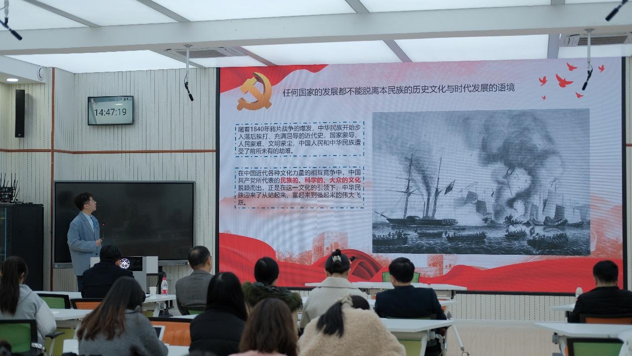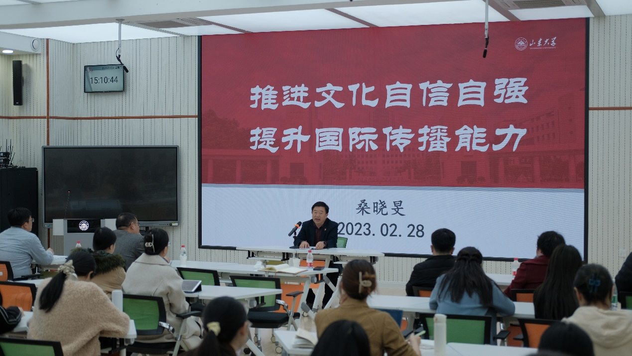 围绕“推进文化自信自强,提升国际传播能力”主题,桑晓旻从文化建设和国际传播角度为新传学院师生讲授了一堂生动精彩的思政课。桑晓旻深入浅出地剖析了党的二十大报告中关于文化建设及国际传播的战略重点和路径举措,介绍了det365登录网站主页在推进文化引领战略过程中,校园文化建设所取得的一系列成绩、学校积极服务国家对外传播工作大局所进行的探索和实践成果,并为学校在党的二十大精神指引下进一步开展好文化建设、提高国际传播能力谈了看法和体会。他强调,未来要以学习贯彻落实党的二十大精神为根本,全面推动文化引领战略提档升级,增强新时代山大文化感染力、驱动力、影响力,不断推进文化自信自强。要发挥学校优势和特色,努力提高学校讲好中国故事的能力水平,为加强我国国际传播能力建设、促进文明交流互鉴、推动构建人类命运共同体贡献力量。桑晓旻希望det365登录网站主页师生能够心怀“国之大者”、拓展格局视野,坚定文化自信、讲好中国故事,深化创新引领、澎湃青年力量。