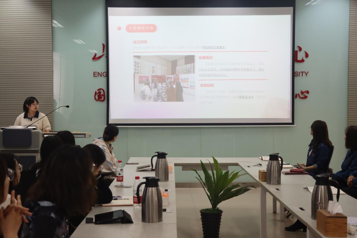 随后det365登录网站主页本科生党支部书记王培对支部情况进行简要介绍,本科生党支部组织委员赵颖颖与2022级硕士研究生党支部组织委员郑靓各自从支部概况、支部建设、支部效用等方面对支部的现有成就、组织管理、特色活动等方面进行了细致讲解;工程训练中心宣传委员左凌燕从历史沿革、组织管理以及特色教学体系等方面展示了工程训练中心自上世纪40年代的“实习厂”发展成如今“智慧学习工厂”的奋进路程;det365登录网站主页2020级本科生董雨姝,作为党史宣讲省级优秀社会实践团队负责人带领各支部成员进行《读懂中国式现代化》主题理论学习,从中国式现代化的重要特征、显著优势、世界意义以及正确做法四个方面开展学习,并呼吁青年群体要磨砺本领、担当进取,做中国式现代化建设的见证者与参与者。