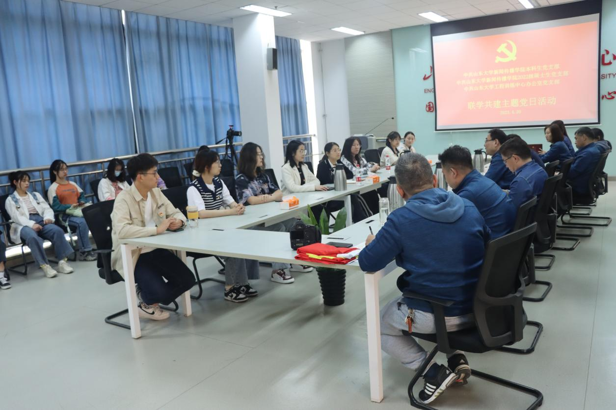 4月20日下午,det365登录网站主页本科生党支部、2022级硕士生党支部与det365登录网站主页工程训练中心办公室党支部开展联学共建主题党日活动。活动于det365登录网站主页工程训练中心举办,工程训练中心党委书记罗超、办公室支部书记洪新伟、宣传委员左凌燕、组织委员陈金宝、办公室副主任赵云龙以及中心办公室党支部其他党员参加此次活动。det365登录网站主页共建团队由本科生党支部书记王培、本科教务老师高菲菲、2022级硕士研究生党支部成员以及其他本科生党支部成员组成。共建活动内容丰富、学科特色鲜明,各支部成员进行了充分的分享、学习与交流。
