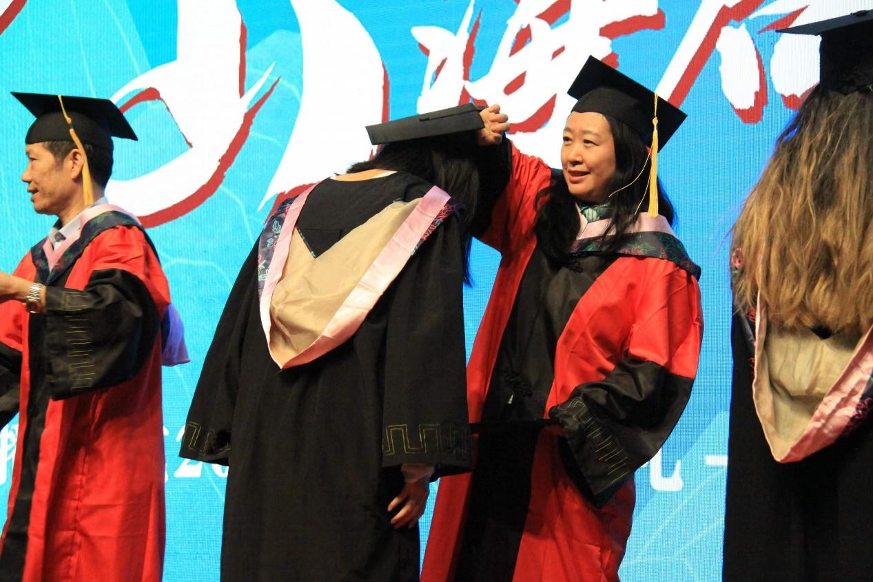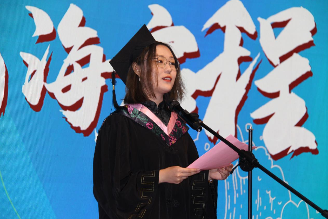 本科毕业生代表赵颖颖则从讲述班级群聊的回忆开始,带同学们回顾了四年的学习生活。在感慨时间飞逝的同时,她表示,在学院学习的过程培养了自己的家国情怀和国际视野,十分感谢学院一直以来的悉心关照,自己和同学们一定会带着新传人的使命和担当,踏上光明的崭新征程。