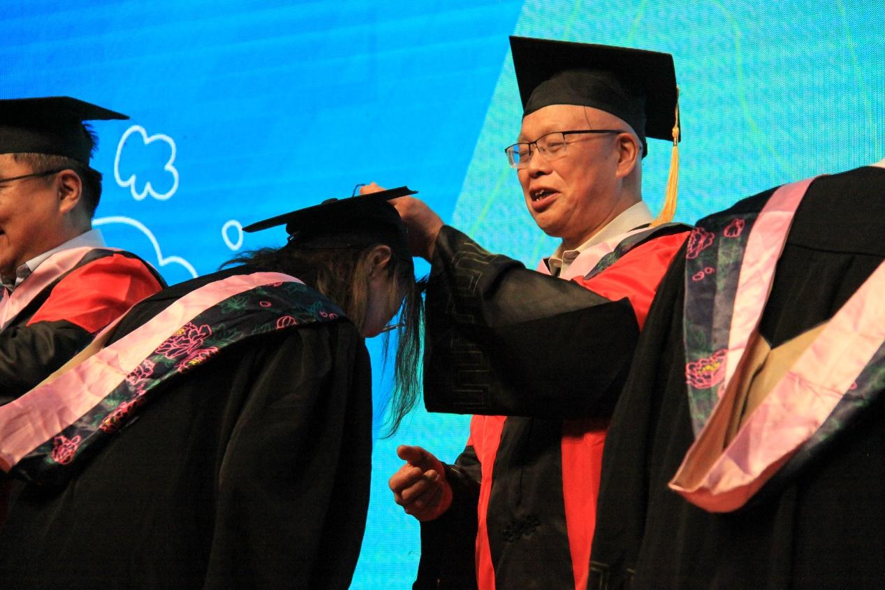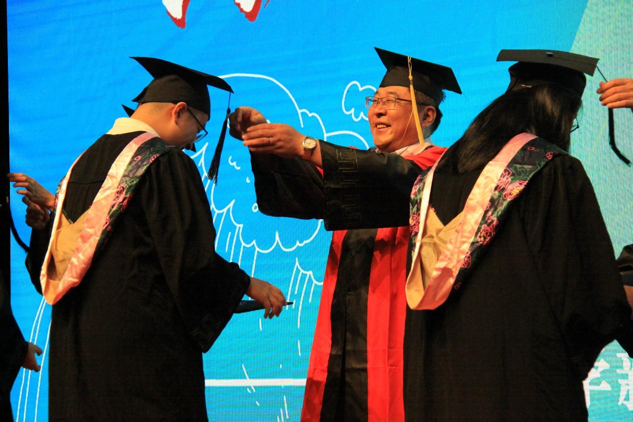 刘明洋院长宣读了《学位授予决定》。学位授予仪式上,det365登录网站主页学位评定分委员会主席刘明洋、副主席王德胜以及委员倪万、邱凌、谢锡文、臧丽娜为本硕博毕业生拨穗并授予学位。学位授予仪式由毕业生代表刘林、代鹏主持。