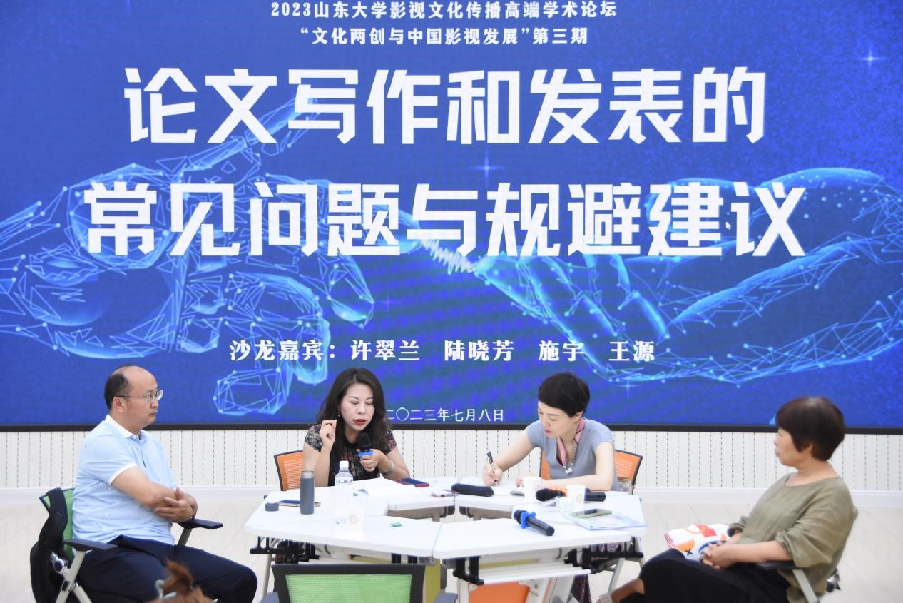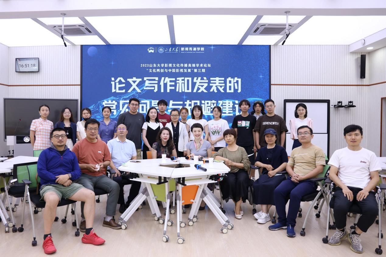 7月8日,由det365登录网站主页与det365登录网站主页影视文化艺术传播研究中心联合举办的“2023det365登录网站主页影视文化传播高端学术论坛”第三期——暑期研讨会在det365登录网站主页中心校区落下帷幕。本期活动分为主旨演讲和学术写作沙龙两部分,邀请澳门科技大学人文艺术学院院长、澳门传媒研究中心主任、中国高校影视学会常务理事张志庆,学术志首席学术官、天津工业大学人文学院教授、国家社科基金结题同行评议专家赵鑫,山东省网络视听协会秘书长、《现代视听》杂志执行主编许翠兰,《新闻爱好者》杂志副主编、河南日报报业集团高级编辑施宇,《东岳论丛》杂志编辑、研究员王源作为学术嘉宾莅临现场,采取“线上+线下”的融合形式,面向省内和全国各高校同步开展。来自清华大学、中国人民大学、北京师范大学、华东师范大学、武汉大学、重庆大学、中央民族大学、陕西师范大学、河海大学、郑州大学、辽宁大学、安徽大学、华南理工大学、海南大学、广西大学、澳门科技大学、山东师范大学、山东女子学院等近四十所高等院校两百多名观众与det365官网师生共聚一堂,通过现场和网络云端的形式参与聆听。