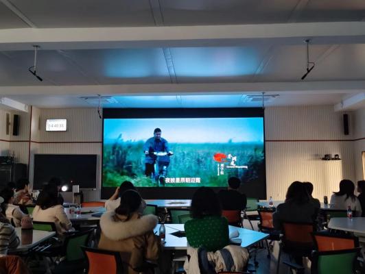 随后,杨璐作为发起人之一介绍了“聆听光影”版电影的制作情况,并播放了学院师生重点参与的“聆听光影”项目优秀影片——《乡医老牛》,这也是该电影在校内的第一次正式展演。电影选取自山东新农村数字电影院线公司出品的吕剧“四德工程”收官之作——《乡医老牛》,影片聚焦农村现实生活,讲述了一位扎根乡村三十载的乡村医生的无私奉献和面对艰难抉择时的医者仁心,展现出共产党人的初心和本色。通过穿插于影片之中的抑扬顿挫的解说与配音,观众可以更直观地捕捉到人物与情节的细节,更真切地感受到影片的感染力。