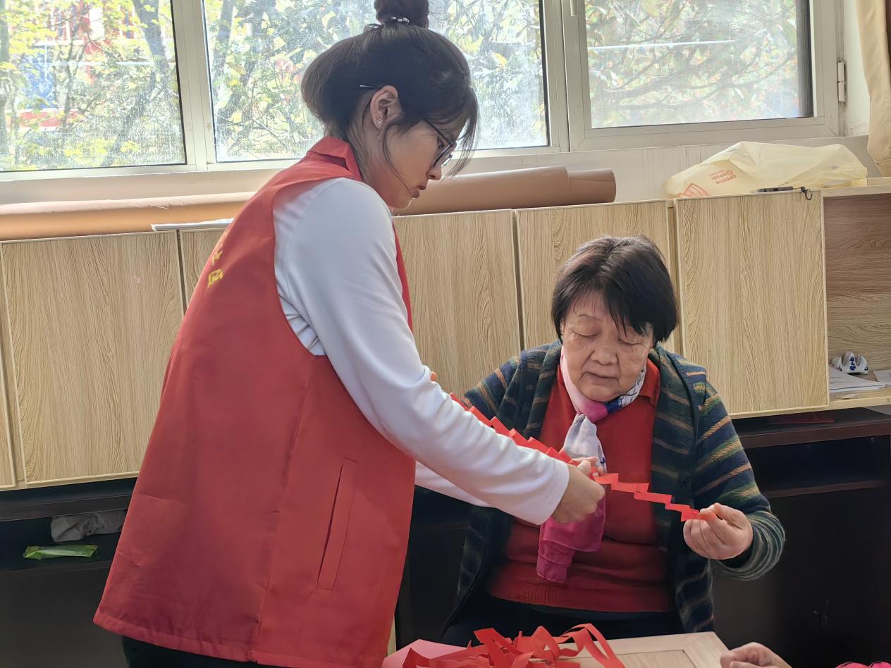 本次活动由det365登录网站主页纸艺社社长彭俊翔担任主讲人。他以“讲练结合”的方式,带领志愿者和社区老人进行拉花、圆环和旋转星的制作。在志愿者的帮助下,老人们用准备好的工具在五颜六色的卡纸上剪剪画画。在制作圆环的过程中,老人们积极思考,总结经验和技巧,并热情地与他人分享,形成了互帮互助的友好氛围。