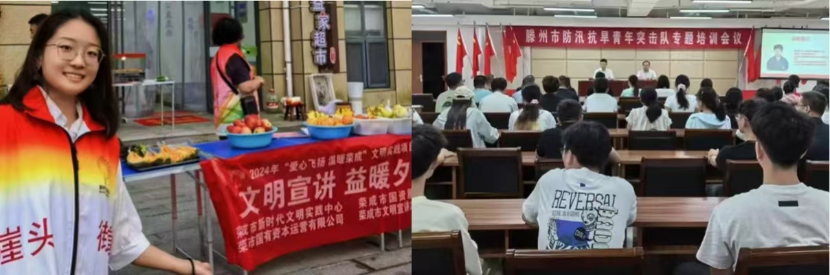 团队成员在实习期间积极参与志愿服务工作。队员孙政南参与到滕州市青年夜校、防汛青年突击队中,积极贡献志愿服务力量;队员梁佳作为志愿者参加荣成市北环社区文明宣讲,弘扬社会主义核心价值观,并参与了社区便民超市整理物资、推介产品等志愿服务;队员尹天佑投入到支教活动中,为孤困儿童带来知识课程和心理疏导,激发了孩子们的学习兴趣和自信心。