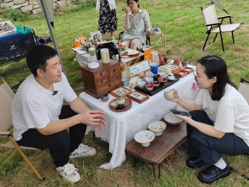 “小南湖夜市——山谷市集”将松弛感拉满的露营风融入市集的DNA,二百来户优质摊主错落有致地排列在山谷草坪中,山谷话剧、乐团、电音与篝火,让人去除“班味”,卸下疲惫,肆意摇晃。时隔一月,“小南湖夜市——越东越city”延续着山谷市集的新奇和热情,如约而至。黄昏初上,高楼霓虹当背景,市集烟火气混搭潮流都市风,夜市现场人潮涌动,处处是欢声笑语。两场市集结束后,东红星、小南湖、星星汇三单位思维碰撞,一场关于《公共设计可能性》的心灵会谈更是为创作新的城市作品提供了经验和方案。活动期间,团队成员们还分别对det365登录网站主页王德胜[1] 教授、臧丽娜教授,齐鲁壹点副董事长吕冰,小南湖夜市创始人木影老师以及青年摊主进行了深度访谈,并主动融入到现场活动中去,大胆尝试放飞创意,感受自由之心。成员们在与现场青年摊主们面对面思维碰撞的同时,捕捉精彩瞬间,试图以更加全面的视角来理解、描绘山谷计划,创作出更多“青年在山谷”的精彩故事。