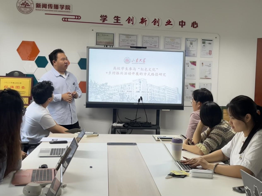 此次学生素质能力提升会议主要围绕学院学生工作方面展开,以课题研究的形式加强精准对接,做好学生服务。着眼于乡村振兴对红色文化的需求以及高校大学生的创造性与创新性,尹天佑团队提出了高校大学生参与红色文化助力乡村振兴的多种参与方式和路径,真正贯彻了“将论文写在祖国大地上”的理念。